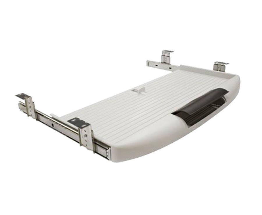 В стандартном представлении это выкатная конструкция, которая располагается чуть ниже основной столешницы стола. Позволяет комфортно расположить руки для длительной работы с устройством. Здесь же рядом обычно располагается и компьютерная мышь.