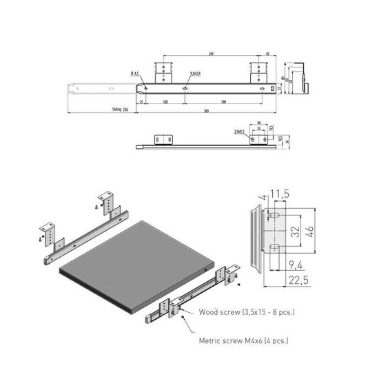 Это расстояние, позволяющее комфортно разместить компьютерные аксессуары. Оптимальная глубина составляет 400 мм. Делать ее меньше или намного больше не рекомендуется; - Расстояние выдвижения. Поскольку полка будет выдвижная, нужно учесть, на сколько именно она сможет выезжать по направляющим. Тут рекомендуется брать направляющие, длина которых составляет от 350 мм и более.