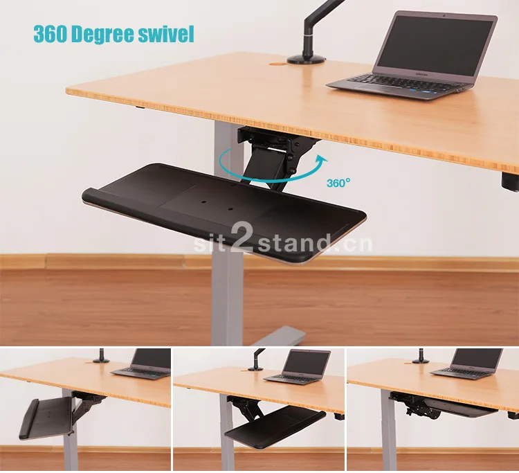 Добавьте полку для клавиатуры на свой рабочий стол или стол, используя дрель и новые инструменты. Как только столешница будет на месте, вы прикрепите три направляющих ящика (винтами) к нижней части стола. Лоток прикрепляется к этой конструкции с ножками, раскачивающимися с обеих сторон. Когда он не используется, его можно убрать в угол или полностью убрать, освободив место на столе без ущерба для функциональности».