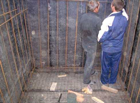 Следующий этап строительства, бетонирование стен. Делают их обычно из кирпича или бетонна. Второй вариант обойдется дешевле. Заливка выполняется так: