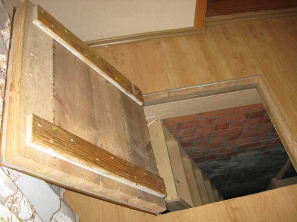 В перекрытии устраивают лаз размером не менее 0,75х 0,75 м (лучше 1х1 м). Каркас лаза рекомендуется сварить из металлического уголка таким образом, чтобы была возможность установить две крышки: одну на уровне потолка, а другую на уровне грунта. Это обеспечит дополнительную теплоизоляцию в зимнее время. Крышка может быть откидной (на дверных петлях или съемной), ее обязательно утепляют теплоизоляционным материалом.
