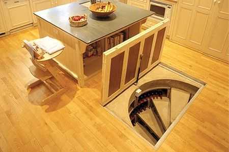 В таких случаях зачастую приходится идти на компромисс. Основное помещение подземного хранилища поставить под самой большой комнатой дома, например, под залом или столовой, а вход будет построен отдельным «прицепом» со стороны вспомогательного помещения.