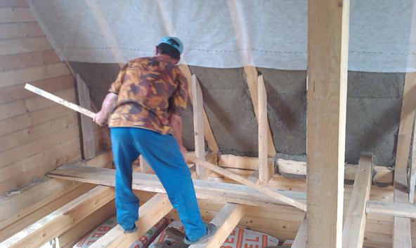 д.), а затем укладывается минвата, пенопласт, шлак с опилками и т.д..