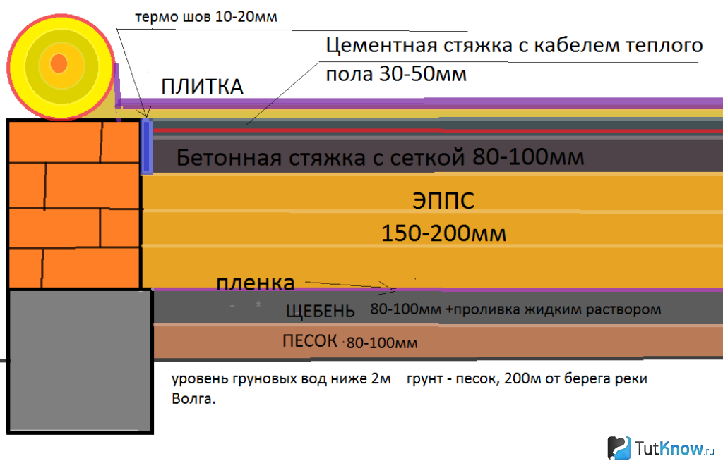 Как правило, такой пол включает в себя следующую последовательность слоев: