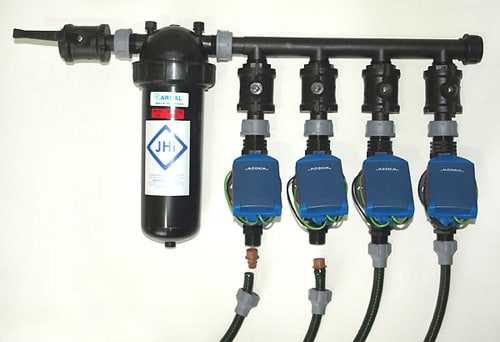 Магистральным проводом может служить обыкновенная труба для подачи холодной воды.3.Фильтр тонкой очистки. Поступающий поток воды нуждается в фильтрации, без него почвенные загрязнения и посторонние предметы в короткие сроки выведут устройство из строя. Механизмам орошения вредят засоры биологического свойства, такие как водоросли, ил; механического в виде песка, камней и химической природы – кальциевые отложения. Для устранения засоров используют специальные реагенты и регулярные промывки не реже 1 раза в неделю. Фильтр устанавливают в магистральный шланг.