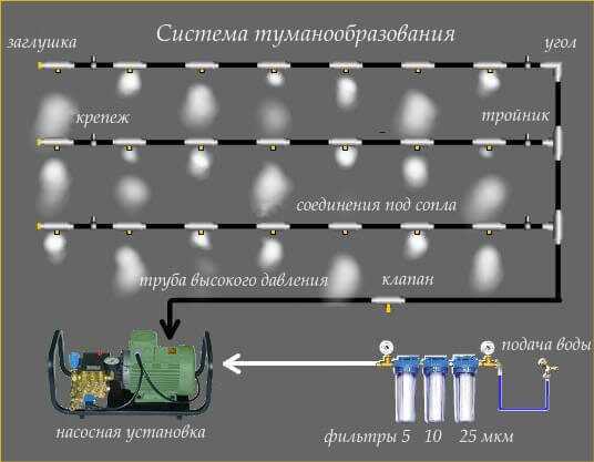 - При помощи системы орошения обрабатывают большие по площади теплицы или открытые пространства.