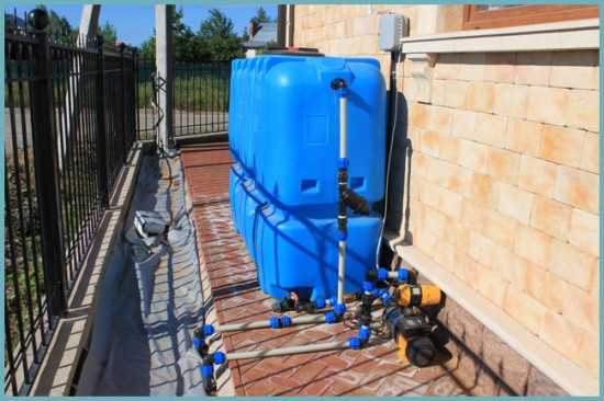 Трубопровод подключают к источнику воды. Емкость с водой должна быть приподнята на высоту не менее 15–25 см для обеспечения давления и движения жидкости. на даче можно поставить еврокуб для полива - он удобнее бочки и установка его проходит легче. Для расчета давления нужно иметь в виду, что поднятие резервуара с водой на 1 метр увеличивает в системе давление на 0,1 бар.