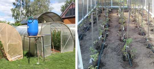 Также капельный полив идеально подходит для тех теплиц, в которых нет доступа к большому объему воды. Ведь шланги – это малообъемная система полива в теплице, и разработана она для применения в теплицах, где воды мало и давление в системе низкое. Поэтому в ход можно пустить самую обыкновенную бочку, которая поднята над землей на высоте 1,5-2 м.