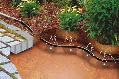 Внутрипочвенный полив незаменим для орошения крупных капризных тепличных многолетников. Для этого необходимо приобрести специальные пористые шланги и трубы.