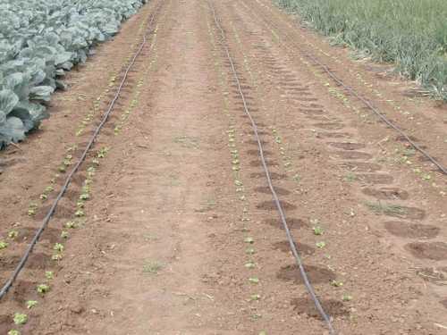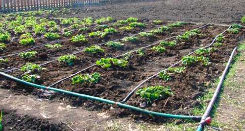 - Оросительную ленту распределяют по земле таким образом, чтобы все растения одинаково снабжались водой.