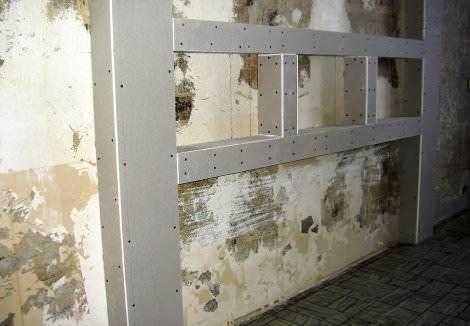 Пример деревянного каркаса полок из гипсокартона - Монтаж ГКЛ на стеновой каркас. Здесь следует действовать аккуратно, четко продумывая каждое действие. Такое отношение к процессу позволит создать конструкцию правильной формы, а также не будет требовать доработок.