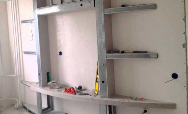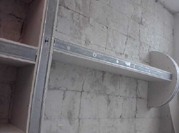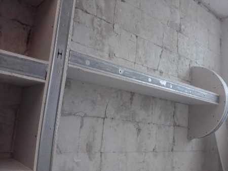 - Когда «коробка» готова, можно приступать к монтажу внутренних частей полки из ГКЛ.