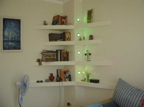 Полки из гипсокартона уместны в любом помещении. Они могут быть сделаны: