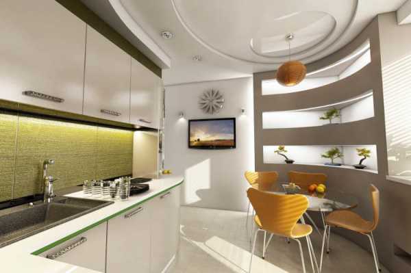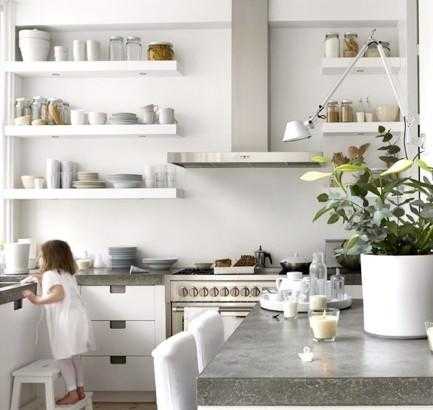 Полки из гипсокартона на кухне могут стать отличной заменой верхних подвесных шкафчиков