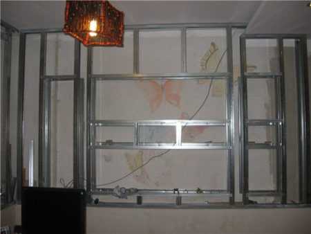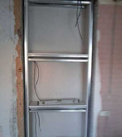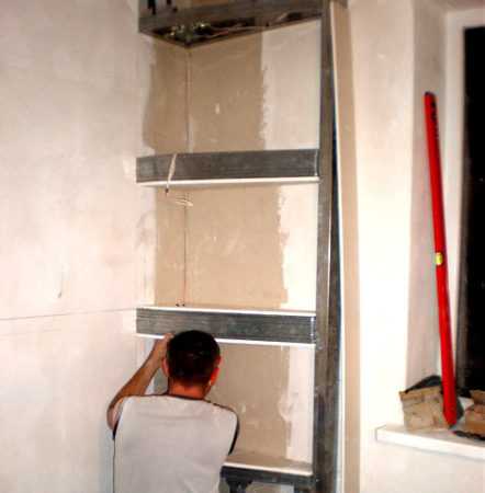 Если же это будет полка для обуви, то достаточно создать обычную обрешетку для гипсокартона, надежно зафиксировав профили между собой. Если же речь идет о нише для различных декоративных украшений, картинок, которые весят мало, можно собирать легкую конструкцию без применения дополнительных крепежных элементов.