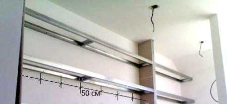 Монтаж каркаса под полку из ГКЛ осуществляется в несколько этапов: