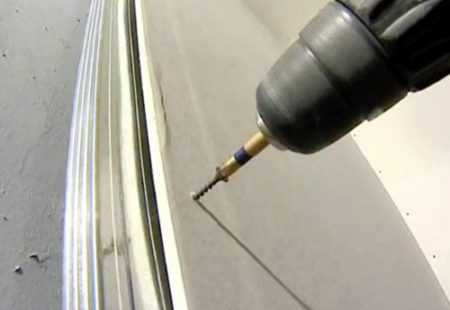 - Сначала нужно с помощью саморезов для ГКЛ прикрепить к каркасу верхний и нижний отрезок гипсокартонного листа. Обычно для этого выбирают саморезы 25 миллиметров в диаметре.