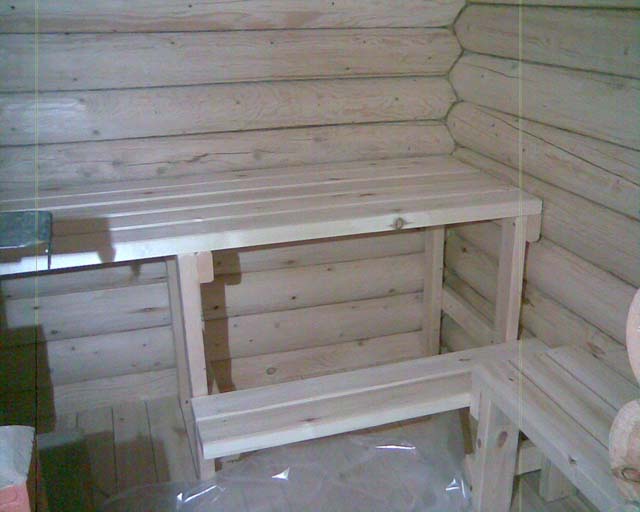 Многие предпочитают (в целях экономии времени и места) ограничиваться при обустройстве парилки всего лишь широкими скамьями. Для тех, кому их в бане вполне достаточно, приведем такие примеры.