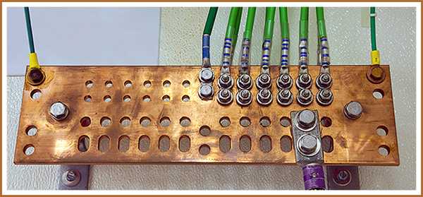 Совет! Каждый бытовой электроприбор должен подключаться к заземлению отдельным проводом. При этом к заземляющей шине провода подключаются в разных местах, на отдельную контактную площадку.