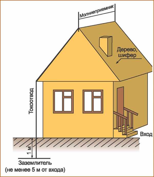 Когда нет заземления и громоотвода, то попадание молнии практически равнозначно пожару. Как правило, пожарной службы поблизости нет, поэтому пламя распространится довольно быстро. Поэтому одновременно с заземлением необходимо еще и устанавливать громоотвод — хотя бы несколько стержней двухметровой длины, закрепленных к коньку и соединенных с помощью металлической проволоки с заземлением.