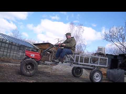 Иначе говоря, адаптер представляет собой обыкновенную тележку с сиденьем, которая подсоединяется к мотоблоку.