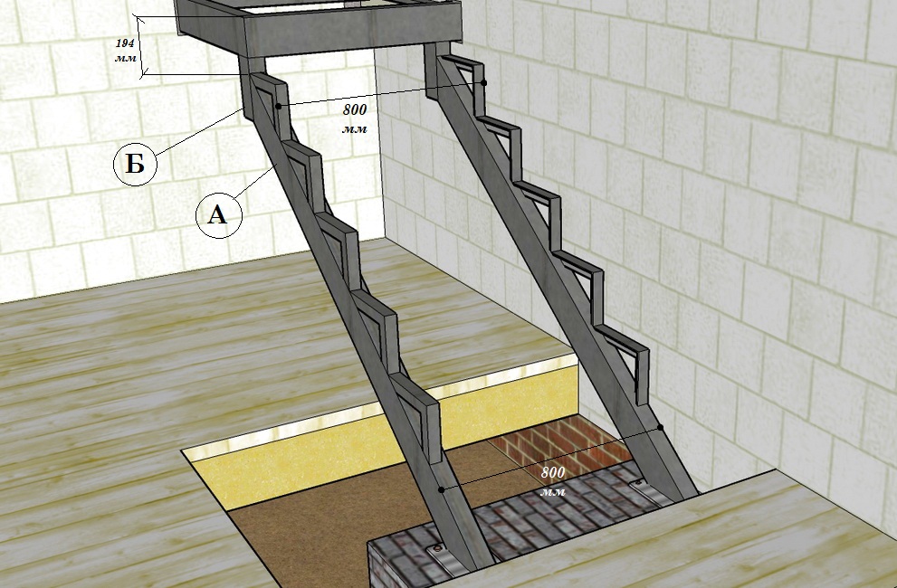«Отминусованные» ступеньки размещаются по высоте между перекрытиями, оставшиеся — должны войти в пространство лестничного проема.