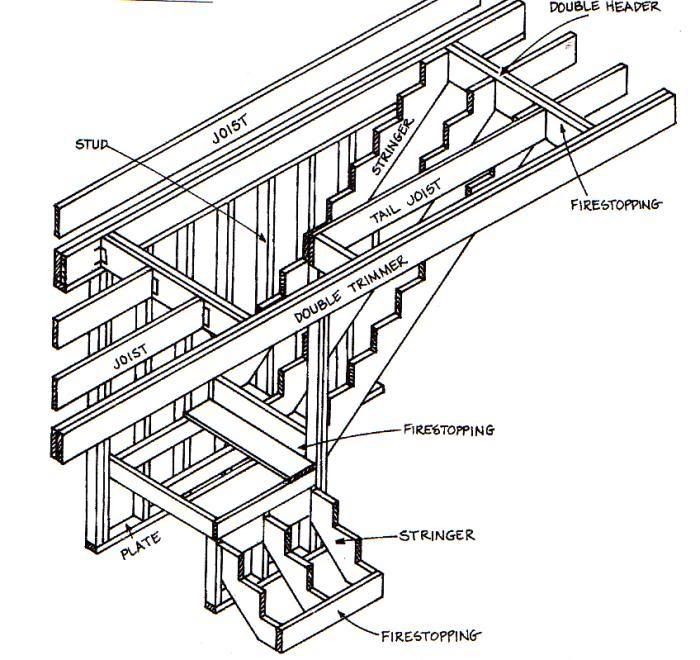 - проем на второй этаж должен проходить между балками перекрытия, если оно выполнено из дерева;