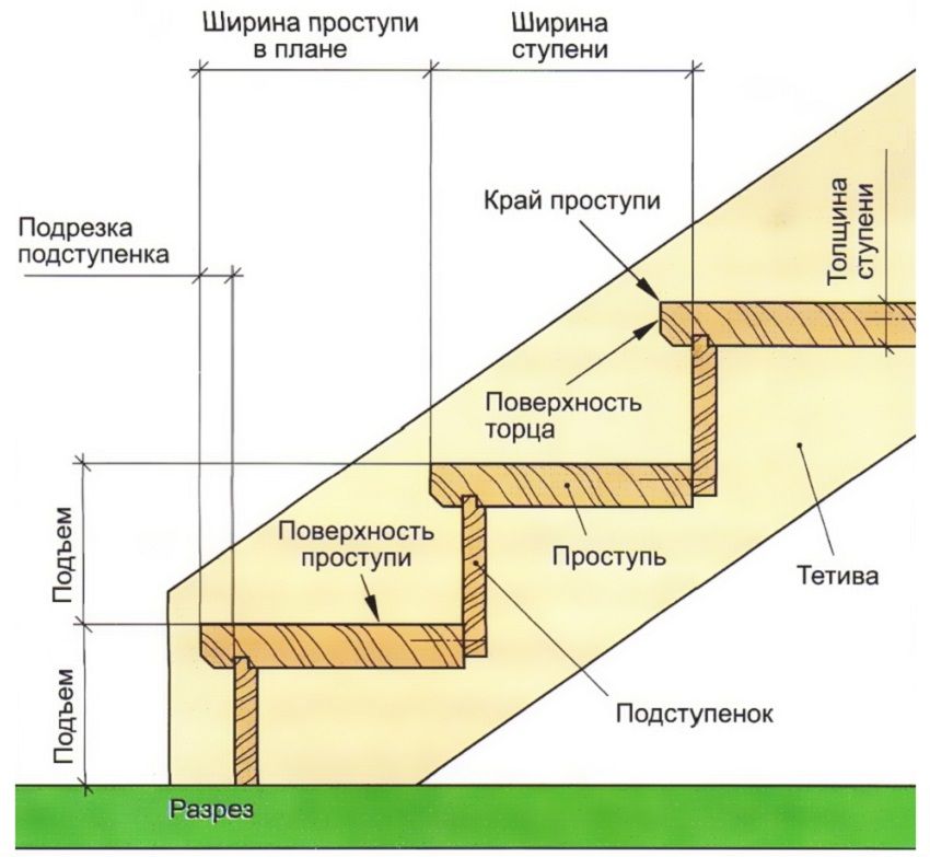 - Ширина проступи и удвоенная высота подступенков вместе должны быть около 60-65 см – это принятая в строительстве длина шага человека.