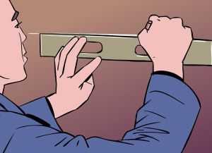 - Прикладываем доску к прикрученному кронштейну и при помощи уровня проверяем, насколько ровной получается полка.