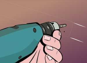 - Теперь приступаем непосредственно к тому, как сделать полку на стену. Сверлим в стене отверстия для закрепления кронштейна. Для этого нужно воспользоваться сверлом по бетону.