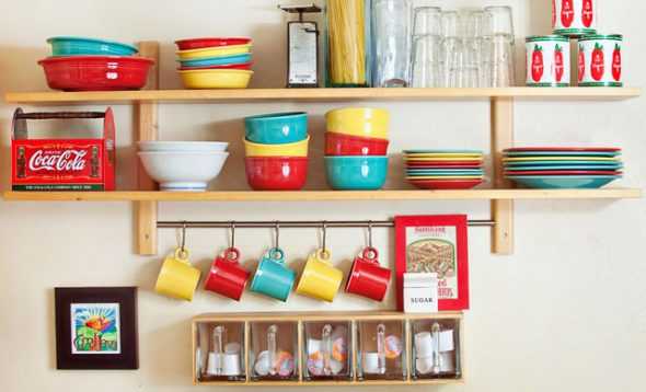 - Управляйте хаосом с помощью триад. Расставьте предметы со сходными цветами на разных полках так, что бы они находились на вершинах воображаемых треугольников.