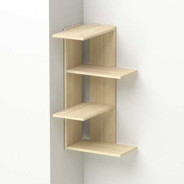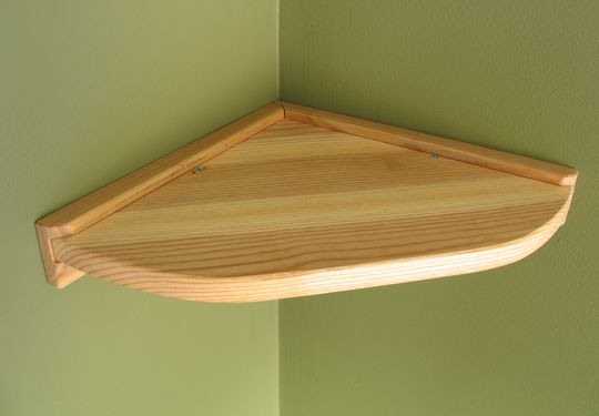 - Угловая полка располагается между двумя смежными стенами, крепится как к стенам, так и к потолку.