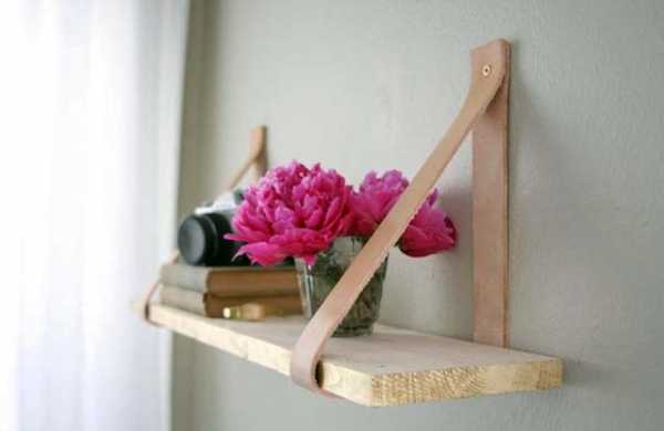 К СВЕДЕНИЮ! Фантазия человека в выборе материала для полок на стену неиссякаема – старые чемоданы, корпуса телевизоров, водопроводные трубы и уголки. В качестве крепежа могут использоваться даже… брючные ремни.