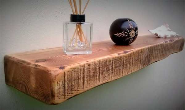 Красиво и аккуратно, а также дорого смотрятся полки из массива натурального дерева. Лучше выбирать мягкие сорта древесины, так как они более легкие в обработке.