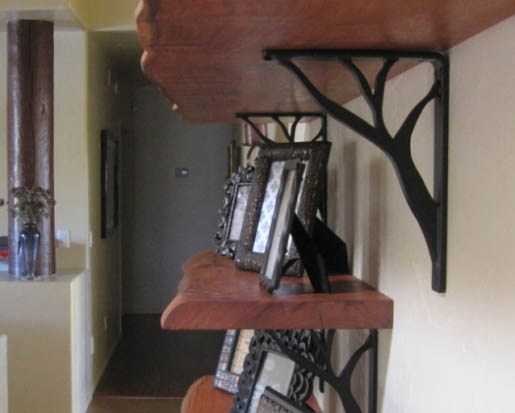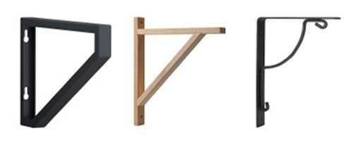 - Чтобы самостоятельно сделать полку, необходимо определить место, где она будет располагаться. После этого выбираем подходящие для нас навесы полки. Они имеют название кронштейны. Могут быть разного вида: от почти незаметных (в форме уголка) до декоративных треугольных, оформленных различными украшениями.