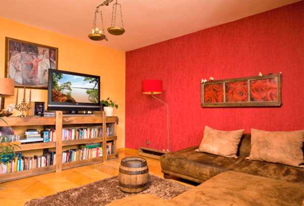 В жилых комнатах не так важно из какого материала сделана полка. Важно чтобы ее оформление было в одном стиле с интерьером.