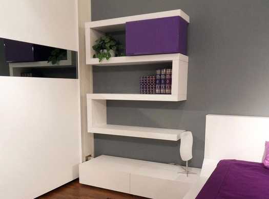 - Настенная полка крепится к стене, часто располагается над какими-либо предметами мебели (над столом, диваном, кроватью).