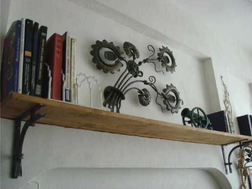 Часто кронштейны несут не только конструктивную нагрузку, но и являются декоративными элементами. Такие полки хорошо смотрятся в интерьере в стиле кантри.
