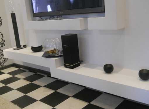 Настенные полки выполняют из различных материалов. Популярны конструкции из гипсокартона, которые не сложно выполнить своими руками. Будущую конструкцию размечают на стене, к которой затем монтируют металлические или деревянные направляющие и обшивают листами ГВЛ. Поверхность полок шпаклюется и окрашивается.