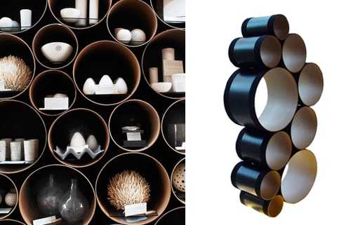 Оригинальные полки круглой формы можно выполнить из пластиковых труб различного диаметра.