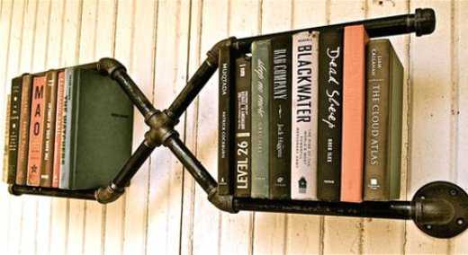 Полка из металлических труб уместна в интерьере в стиле лофт.