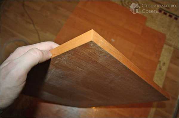 - Улучшить внешний вид поможет меламиновая торцевая кромка, используемая для ЛДСП. Желательно, чтобы цвет ламинированного листа совпадал с цветом кромки.