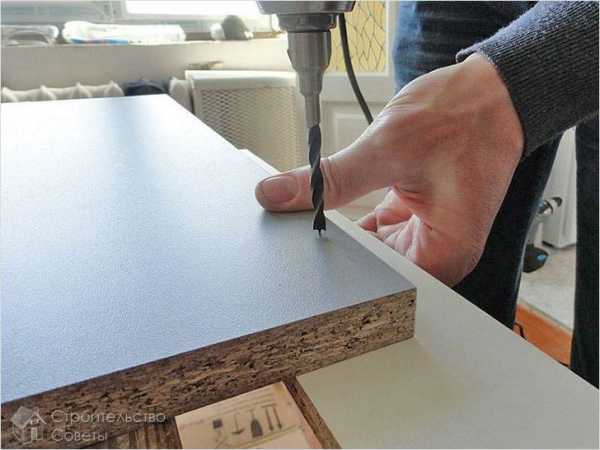 Для подстраховки в месте вкручивания самореза в нижнюю часть боковины нужно заранее просверлить тонким сверлом отверстия.