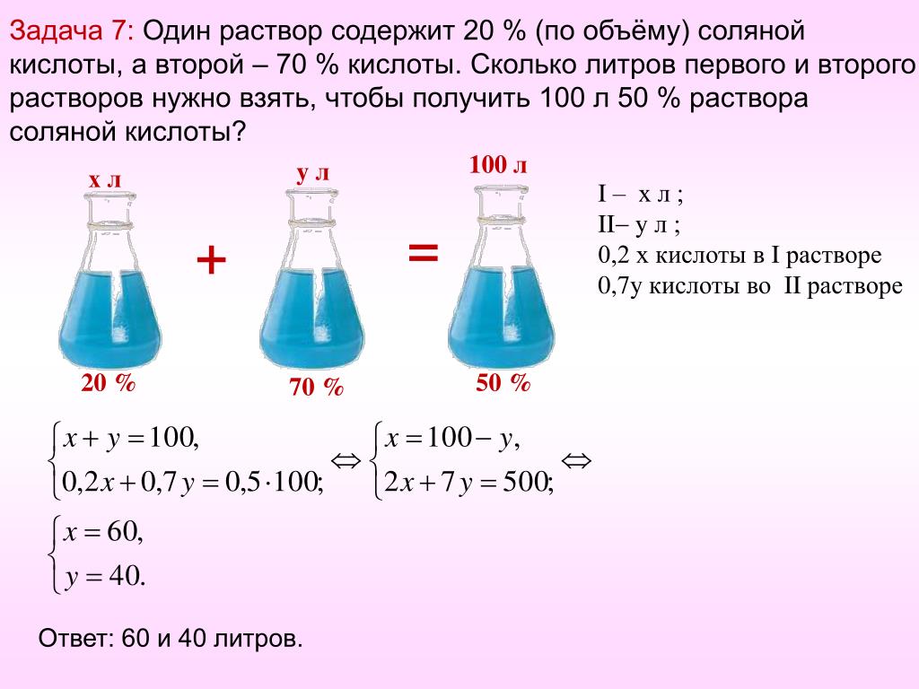 Смешивание двух растворов одного и того же вещества различной концентрации для получения раствора заданной концентрации.