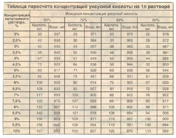 Для удобства в работе применяют готовые таблицы, по которым можно подобрать необходимую концентрацию: