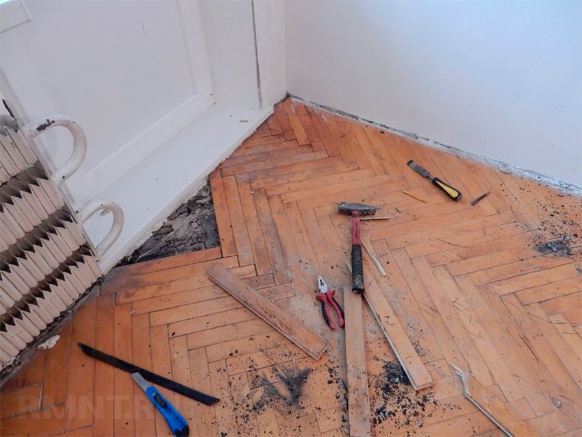 Перед тем, как приступить к проведению ремонта, проводят обследование состояния половиц и, исходя из его результатов, делают заключение об объеме ремонтных работ: