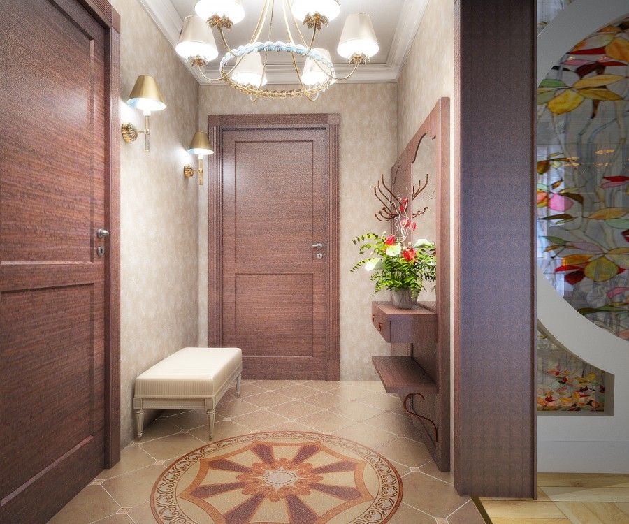 Это сочетание, дополненное необычным орнаментальным ковром, подчеркнет вкус и стиль, индивидуальность владельца дома/квартиры. - Большое зеркало размером от пола до потолка, повешенное в конце коридора, визуально увеличит пространство, сделает комнату более открытой.