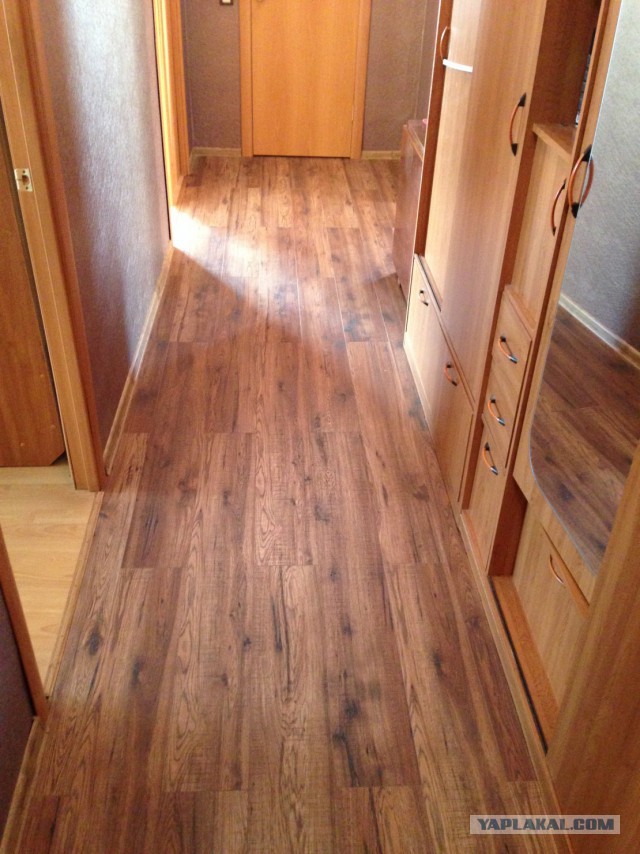 Для отделки пола в длинном коридоре подойдет керамическая плитка или линолеум, в редких случаях паркет, ламинат.