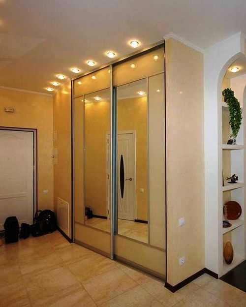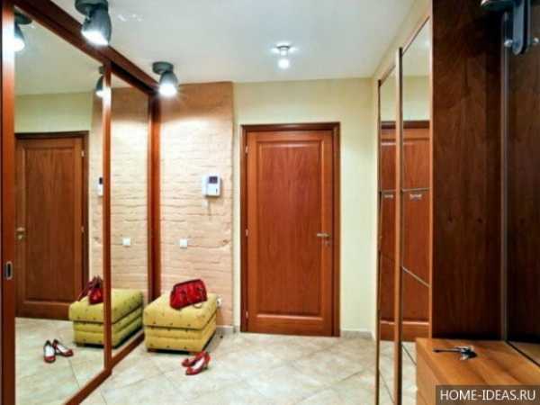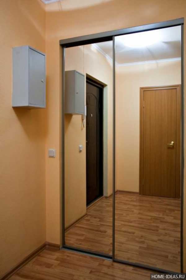 Если планировка прихожей позволяет разместить зеркальный шкаф-купе прямо напротив входной двери, обязательно используйте такую возможность.