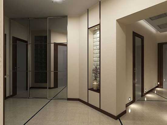 - не клеить привычными светлыми тонами помещение, как это обычно применяют для прихожих. Дизайн можно выполнить с темными оттенками с хорошо организованной подсветкой;
